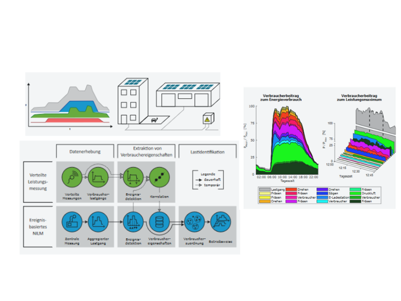In the field of research on "Non-intrusive Load Monitoring" (NILM), the aim is to identify the operating mode of loads by non-invasive load monitoring. One innovative method is load identification by distributed power measurement. The operating mode of individual consumers is recorded by a central load measurement. For this purpose, events such as switch-on or switch-off processes are detected with the help of high-resolution data and machine learning algorithms and assigned to the corresponding consumers. For further optimization of consumption, explicit attention is paid to the operating mode of the consumers. By analyzing this data, effective measures for increasing energy efficiency can be identified and evaluated. This enables targeted and optimized energy consulting for buildings and businesses.