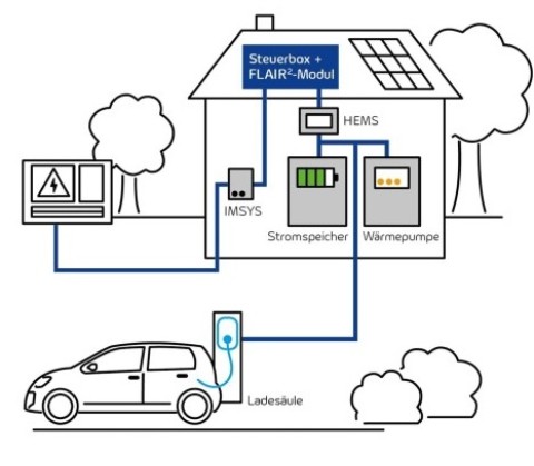 The core of the concept are control boxes (StromPager DX) including the FLAIR² module, which are provided to households free of charge. These devices, developed specifically for FLAIR², are designed to control wallboxes for electric vehicles, storage heaters or heat pumps in such a way that they do not additionally load the grid as much as possible, while at the same time using renewable energy from the local power grid.